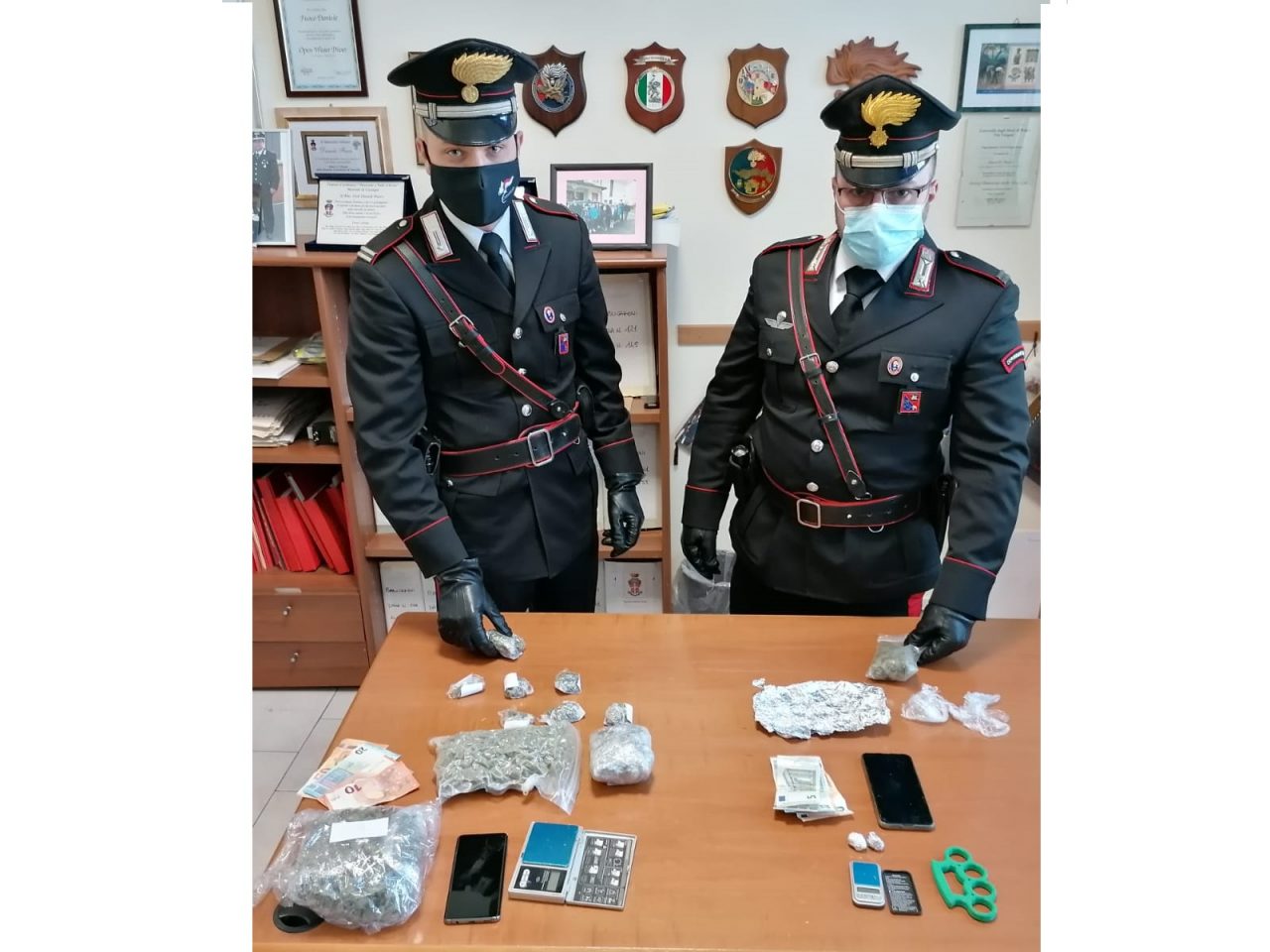 Proseguono i controlli del Carabinieri sul territorio, dopo un controllo è stato fermato un ragazzo che in auto aveva della droga e anche un tirapugni.